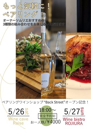 「ワインペアリングをもっと気軽に」をコンセプトにワインビストロを店舗展開・運営する株式会社プライベート・サーヴィス(本社: 神奈川県横浜市、代表取締役: 佐々布拡昭)は、この度、Web上でワイン・料理のペアリングを知る・探す・出会うことからご注文できるワインペアリング専門ECサイト「BackStreet」を5月18日(木)、一般公開いたしました。5月27日(土)および28日(日)には、神奈川県横浜市内の各店舗にてECサイトオープン記念イベントを実施いたします。