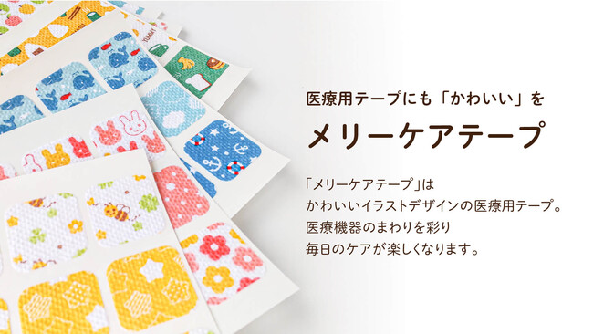 そこで、毎日着る服を選ぶように「医療用テープを色やデザインの好みで選べたら、楽しく前向きな気持ちになれる」と考え「メリーケアテープ」を発売。