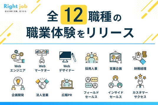 この度「Right job」が提供する職業体験プログラムにおいて、新たに7つの職種を加え、全12職種に拡充したことをお知らせいたします。