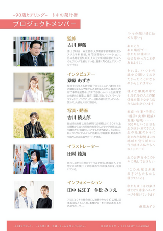 株式会社アカデミーシェアリング(大阪府大阪市、代表取締役:桑原あずさ)では、東京都市大学環境学部環境経営システム学科・古川柳蔵教授監修の元「90歳ヒアリングのインタビュー事業」を行い、東京都市大学の教材づくりの一部を担います。