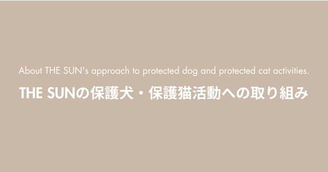 THE SUNは、ブランド創設時からTHE SUNを通して得た利益の一部を、保護犬・保護猫活動へ寄付していくことを掲げています。今後「THE SUN ONLINE SHOP」のBLOGから寄付活動を随時レポートしていく予定です。