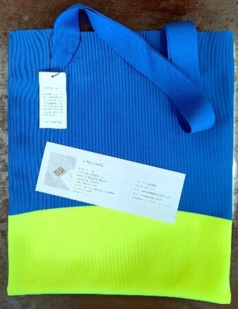 今春新潟で開催したG7財務大臣・中央銀行総裁会議で各国代表にプレゼントしたものと同じ五泉ニット製ウクライナカラーのトートバッグを田辺正幸五泉市長から提供していただきました。