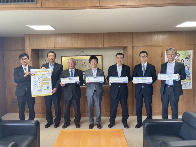 三条市、燕市、加茂市、見附市などへ小学生を対象にした子ども夢チケット約11,000枚をプレゼントしました。 6月13日(火)協賛企業を代表してパール金属(株)高波社長が三条市長へ贈呈しました。