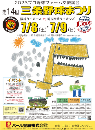 7月8日(土)・9日(日)、新潟県三条市・三条パール金属スタジアムにてファーム交流試合 阪神タイガース対埼玉西武ライオンズ戦を行います。前売り入場券はただいま好評発売中です。