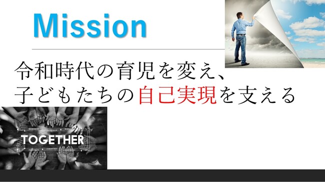 我々の事業のMISSIONは「令和時代の育児を変え、子どもたちの自己実現を支える」ことです。