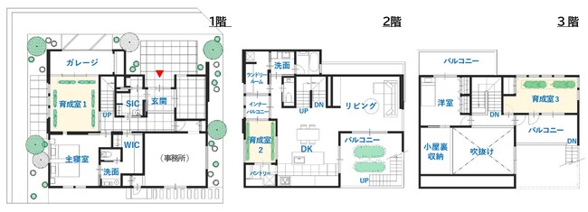 ●住まいの各フロアに「育成室」をレイアウト。日常生活の中に農業がある暮らしが可能となります。