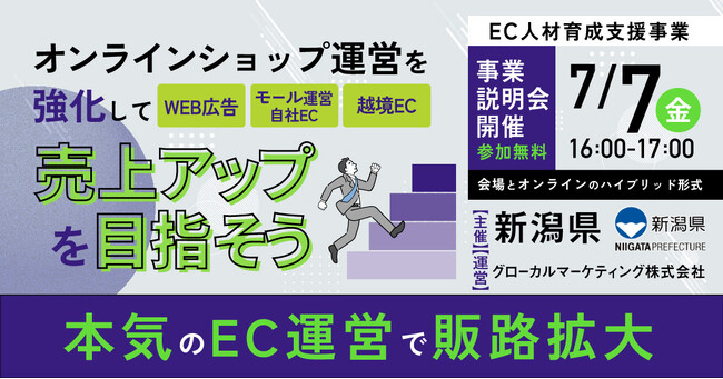 グローカルマーケティング株式会社(本社:新潟県長岡市/URL:https://glocal-marketing.jp/)は、新潟県からの委託を受け、新潟県内の事業者向けにオンラインショップ運営、デジタル広告、売上分析などの業務を自社で完結できる人材を育成することを目的に「デジタルマーケティング人材育成支援事業」を開始します。