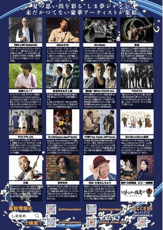 また、元PE'ZのトランぺッターOhyama“B.M.W.”Wataruと、日本におけるジャズマヌーシュの第一人者であるギタリスト手島大輔が率いるBimBomBam楽団が、元SOIL&“PIMP”SESSIONSの元晴(SAX)、Gentle Forest Jazz BandやSUGIZO主催のSHAGのメンバー、別所和洋(ピアノ)と共に、イベントのために作曲、レコーディングに鼓童も参加した特別テーマ曲「シマユメ~Island Dream~」を披露します。