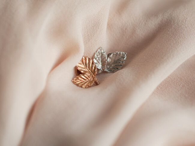 デンマークの国樹、「ブナ」。本物のブナの葉から作られた鋳型を使用した、自然豊かなデザインが魅力的なピンです。デンマークのマルグレーテ2世女王陛下がデザインしたブローチを元に、より身につけやすいピンにしました。