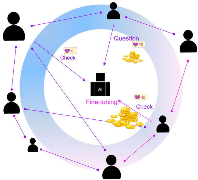 DAOメンバーによる添削行為を促すことで、時間的鮮度の高い情報や、暗黙知(クローズドデータ)を効率よく学習させることができます。