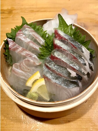 店長が長崎の生産者に直接足を運び、こだわり抜いた生産方法と育てるまでの苦労に感銘を受け、⾸都圏の消費者にこのブランド⿂の美味しさを届けたいとの想いから、まずは皆様に必ず食べてもらえる お通しに”ゆうこう真鯛”、”ゆうこうシマアジ”の刺し盛りの提供をしている。