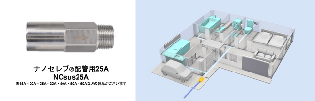 各産業で注目されているナノバブル。「ナノセレブ(R)」は、家庭内のすべての水道水をナノバブル化することができる製品です。水道用の給水配管に取り付けるだけで水道の水圧のみでナノバブルを発生させ、水回り全てでナノバブル水を使用することができます。