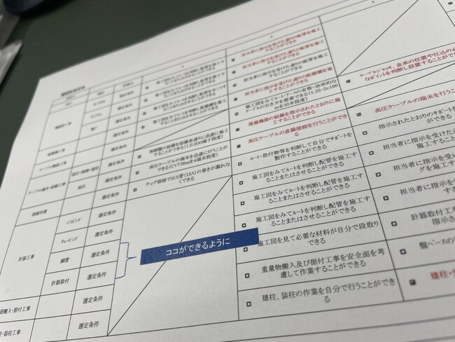 そこから、弊社が携わる工種を洗い出し、自社独自の評価制度を1から作り上げました。