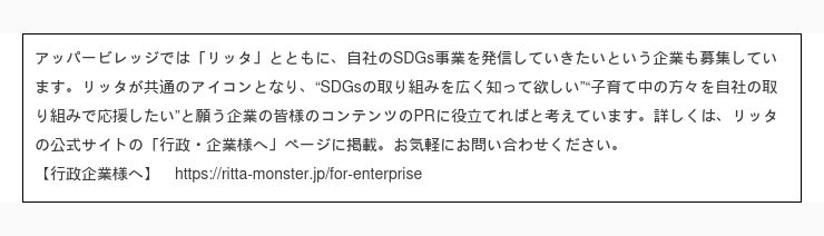 アッパービレッジでは、この取り組みを通じて創業20周年に合わせた社会貢献活動の一環でこの事業を始めました。社員は全員女性で子育て中のママも多い。そんな私たちが世の中に対してできることを考えた時に、自分達が得意な、難しいことを柔らかく伝えること。SDGsの仕事に長く携わっていて知識があること。コンテンツを考えること、絵を描くこと、動画を作ることなどの強みを元にリッタが誕生。