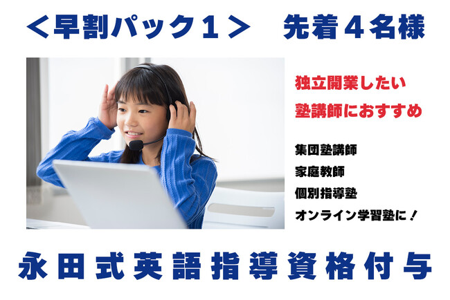 【永田式英語の指導資格付与<早割パック1~>】60,000円~(4名~)