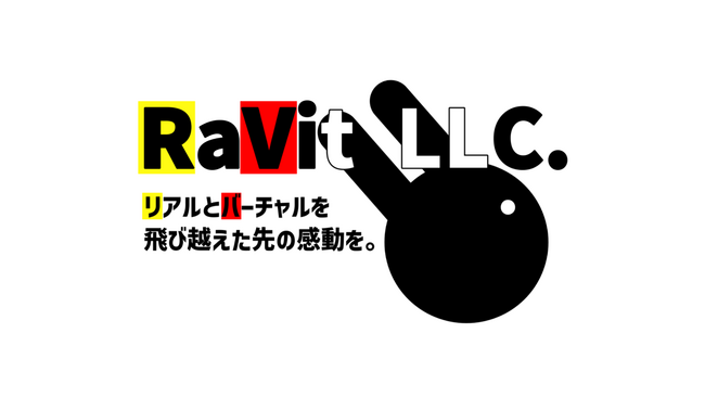 ※【リアルとバーチャルを飛び越えた先の感動を。】というミッションを掲げた、合同会社RaVitの企業ロゴ。