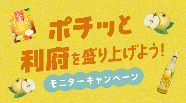 Instagramから「利府町で頑張る団体への応援メッセージ」と一緒にご応募いただき、当選されたモニターの皆様には、利府梨を使った「金の利府梨カレーと梨ジュースのセット」をプレゼントいたします。ぜひ、奮ってご応募ください。