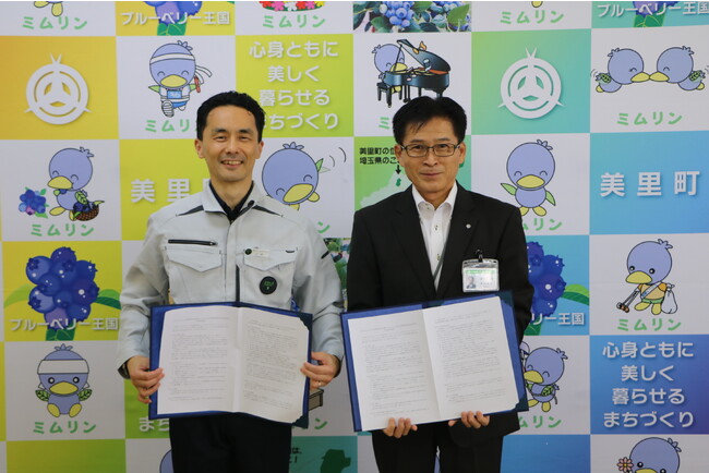【締結式の様子】(左)アジャイルエナジーX代表取締役社長 立岩健二、(右)美里町町長 原田信次