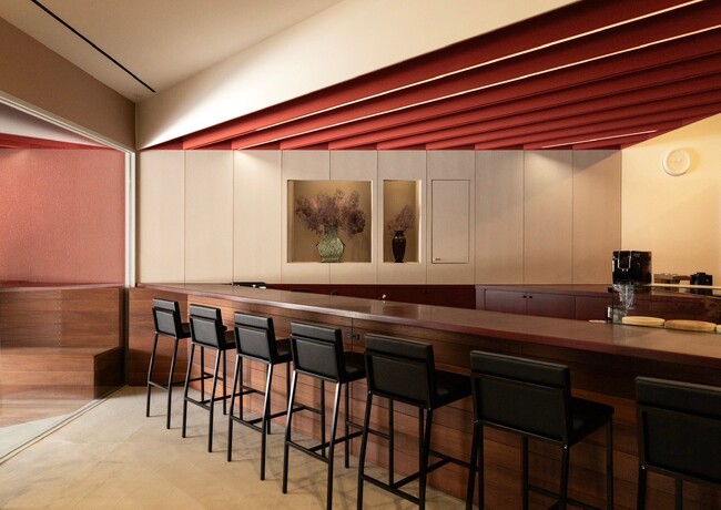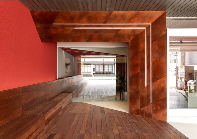 店内の空間設計では、地元高岡の『モメンタムファクトリー・Orii』による着色銅板を採用し、工芸と建築を結びつけた内装となっています。店内の什器にはHAJIME YOSHIDA ARCHITECTUREのインテリアブランド『hajimeyo』の作品をはじめ、新商品となる「小皿」をカフェでお楽しみいただけます。