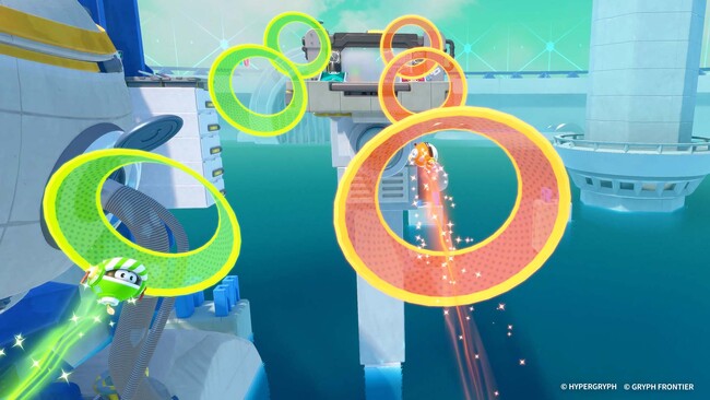 「ポム」に「レインボーポッパー」が命中すると、弾のカラーと同じカラーの「ポム」が生成されます。