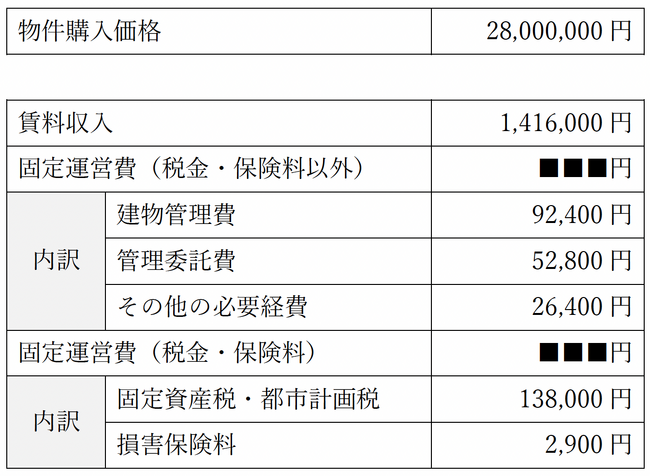 年間実質利回りは、「(年間賃料収入−年間必要経費)÷物件購入価格×100」で求めることができる。なお設問では、「固定運営費(税金・保険料以外)」と「固定運営費(税金・保険料)」に分けて年間必要経費を記載している。