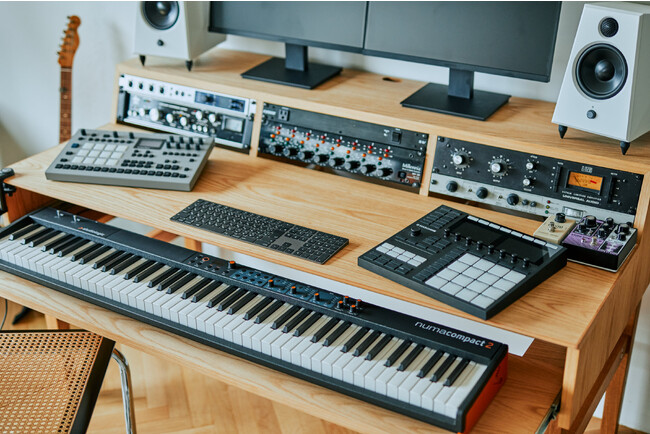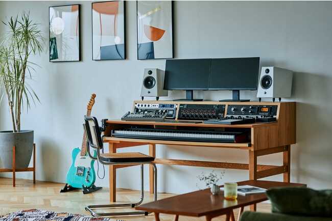 2.ホームスタジオでも設置可能なコンパクトサイズに、幅一杯のキーボード収納