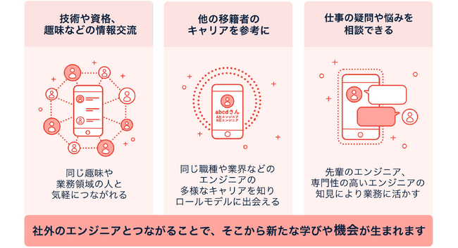 本コミュニティでは、顧客企業の正社員となったアルムナイ同士がつながることで、情報交換やスキルアップを実現することを目的としております。また、この貴重な人材を組織化し、アルムナイの皆さんによる体験談などのフィードバックを通じて、当社の現役エンジニアのさらなる成長を図りたいと考えております。