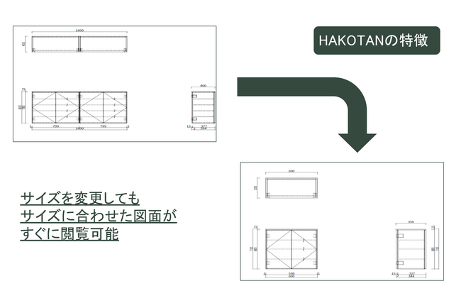 そのような背景を踏まえ、お部屋空間のご提案とより多くの方へご希望の家具を届けたい我々の願いから、家具のサイズ、デザイン、注文が気軽にできるサイト「HAKOTAN」を開設しました。