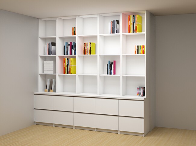 本サイトは、ご希望の収納家具を選択し任意の縦・横・高さのサイズとお届け先の郵便番号を入力するだけでただちに見積もり金額と図面が表示され、そのまま注文ができます。