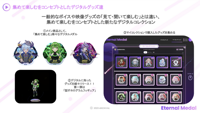 リスナーにとっては、「応援の形」です。これまでは投げ銭へのリターンはVタレントとのコミュニケーションに限定されることが多かった一方で、「ETERNAL MEDAL」では応援だけでなくデジタルグッズを集めることができます。