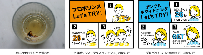 プロポリンスは全世界で5000万本販売されているマウスウォッシュです。お口の中の汚れや口臭はタンパク質汚れが原因のひとつ。プロポリンスは口腔内のタンパク質汚れを絡め取って固めて出すというもので、汚れが目で見て確認できるから爽快感も格別。汚れが目で見えるマウスウォッシュのプロポリンスシリーズ、ホワイトニング効果のある液体歯磨きプロポリンスデンタルホワイトニングとラインナップも豊富で、自分に合う商品を選ぶことができます。コラボボトルには特に人気の4種類をご用意しました。