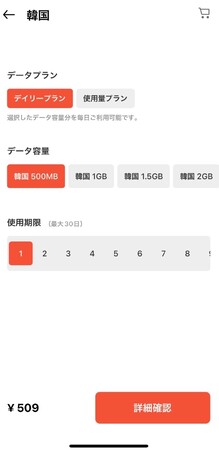 このように、自分の旅行日数や必要なデータ容量に合わせて気兼ねなくeSIMを購入することができます。