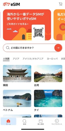 「ポケeSIM」はデータ通信用の海外eSIMを購入し、スマートフォンに設定できるアプリです。ネットショップで商品を選ぶ感覚でeSIMプランを選択・購入できる手軽さが特徴となっております。アプリ内で行く予定の海外旅行先の検索、購入までは非常にシンプルな画面構成であり、eSIM対応機種でありSIMロックが解除されたスマートフォンであれば誰でも利用ができるアプリです。