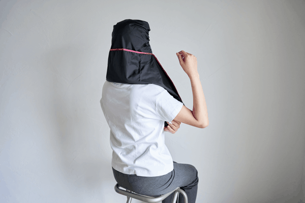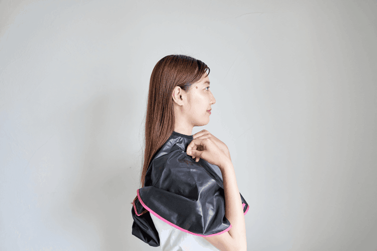 ケープを巻いて、フードをかぶることで、いつもの毛染め作業が、これまでとは比較にならないほどラクになります。