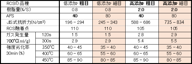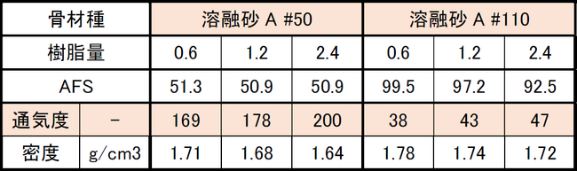 溶湯温度が低い鋳物の場合には、樹脂の強度劣化が起きにくいために、崩壊性が悪く砂出し工程に課題があります。