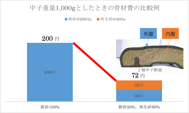 →複層砂中子を採用すると、材料コストの面で原価低減を達成できます。