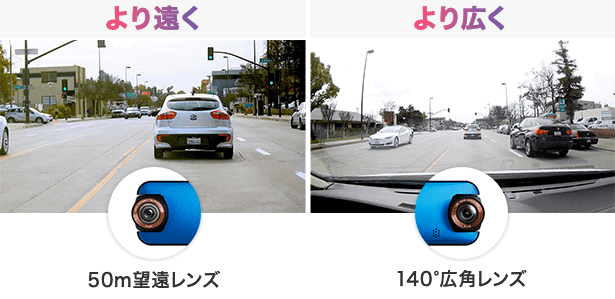 シリーズ初となる望遠レンズを搭載しているため、通常の広角レンズでは見えにくい遠くにある車両のナンバープレートや交通標識、道路の状況などもハッキリと確認することができます。