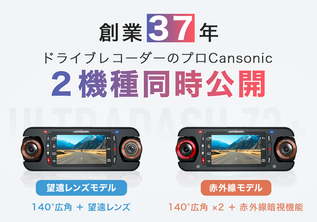 ドライブレコーダーの専門家Cansonic(キャンソニック)から近くと遠くを同時に撮影したい方に望遠レンズモデル。昼夜問わず、車外と車内を同時に撮影したい方に赤外線モデル。自分のドライブスタイルに合わせて選べる2モデルを同時公開しました。
