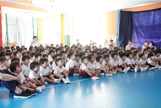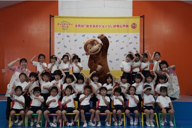 一足先に、東京都内の江戸川幼稚園で記念イベントを開催し、日頃から親しみのあるジョージの登場に園児たちは大興奮!ジョージの姿を見ながら、“好奇心をもつこと”や“工夫して試してみること”の大切さを先生からも園児たちに説明していただきました。