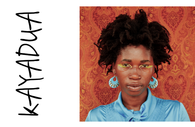 ヘンリエッタ・エイワア・アギクメネ(通称エイワア)は、KAYADUAの創業者でありデザイナーである。彼女はガーナのクマシで生まれ、祖母たちに育てられた。 デザイナーとしてのエイワアは、自身の生い立ちや人生経験からインスピレーションを受け、それをブランドに反映させている。彼女はクワメ・ンクルマ科学技術大学に進学し、繊維と織物に焦点を当てた総合地方工芸産業の学位を取得し、伝統、機能、品質を優れたデザインの信条として追求している。彼女の幼少期の経験、教育、モデルとしての経歴が、ブランドを立ち上げるきっかけとなった。エイワアは、身にまとう人の生活をより豊かにする、持続可能で時代を感じさせない作品作りに励んでいる。KAYADUAは、ガーナの長老たちの遺志を称える一方で、若い世代に自信に溢れ、自立した自己表現ができるようインスピレーションを与えている。
