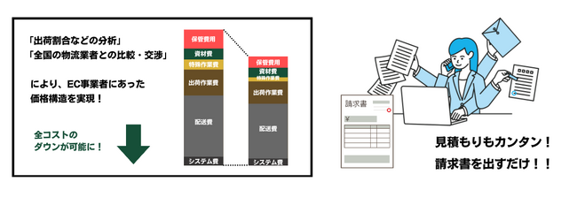 特に、EC事業者の売上を堅調にするための要素である「見えない物流課題とコストの可視化」、「物流の最安コストの提案」、「ビジネス拡大のための選択肢をすべて網羅する」など物流とマーケティングの隙間を埋めるためのサービス開発を進めています。