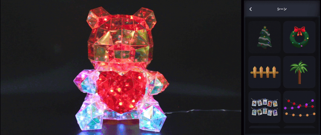 アートの世界で、新たな可能性が広がります。「Prism Crystal」Motifは、専用アプリを通じて、複数のくまたちを同時にコントロール。最大4つの製品を一つのアプリで操作し、複数の部屋にアートの輝きを広げることができます。