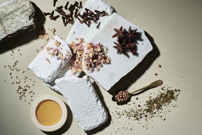 ダマスクローズの蜂蜜に、ローズの花びら、スペアミント、八角、クミン、クローブ、コリアンダーシードを調合。身体を整え、内側から輝きを放つはちみつ。