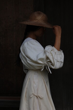 一方、妻の佐々木千穂(ササキチホ)は、古き時代の生地を駆使し、「架空の民族衣装」をテーマにした独創的なデザインを展開。古布の制約を逆手にとり、工夫とアイデアを結集して、新たな魅力的な服作りを実現しています。