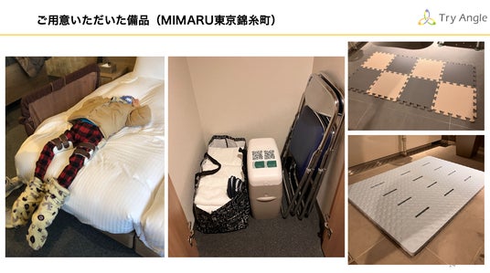 Try Angleは、東京・京都・大阪で27箇所展開されているホテルの内、「MIMARU東京 錦糸町」「MIMARU東京 浅草STATION」にて医療的ケア児家庭の試泊を実施するとともに、スタッフと医療的ケア児家庭でヒアリングの機会を設け、改善点の洗い出しをサポートしました。