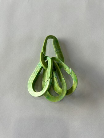 すでにリサイクルもされているプラスチックですが、日常生活のなかでリサイクルされたものを気にする機会は多くありません。今回、製作を開始したグッズでは、廃棄される身近なプラスチック製品を素材に活用し、素材の色が混じったマーブル模様が特徴となっており、ゴミや再生プラスチックなどを考えるきっかけにできればと考えております。
