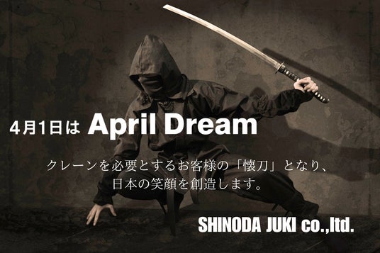 当社は、4月1日を夢を発信する日にしようとするApril Dreamに賛同しています。このプレスリリースは篠田重機株式会社の夢です。