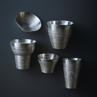 芦屋釜復興事業に於いて、養成員として16年間の修行を終え独立をした鋳物師樋口陽介が、美しい日本の文化をより多くの方に届けようと『伝統を身近に』『日常を彩る』をテーマに芦屋釜づくりで培った薄造りの鋳物技術を生かした「芦屋鋳物 陽」を立ち上げ、日本の伝統と技術が息づく錫製酒器が誕生しました。