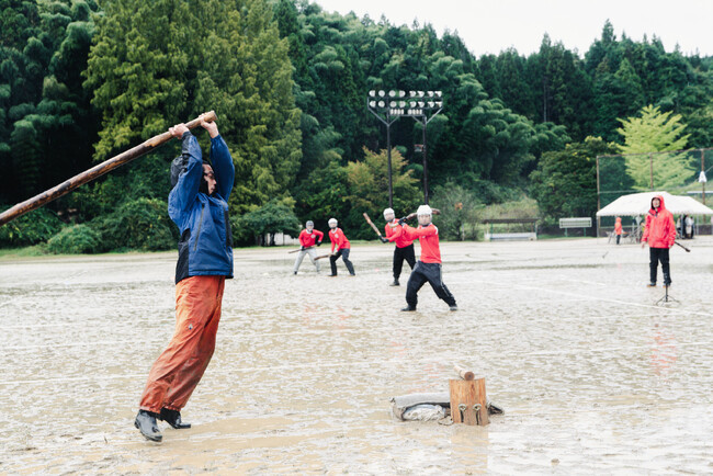 守備はおらず、被打棒の飛距離を競う。当日の一般参加も可能。昨年大会では男子が26m、女子が14mを記録しています。棍棒は貸し出され、危険もない為初心者でも気軽に参加できます。