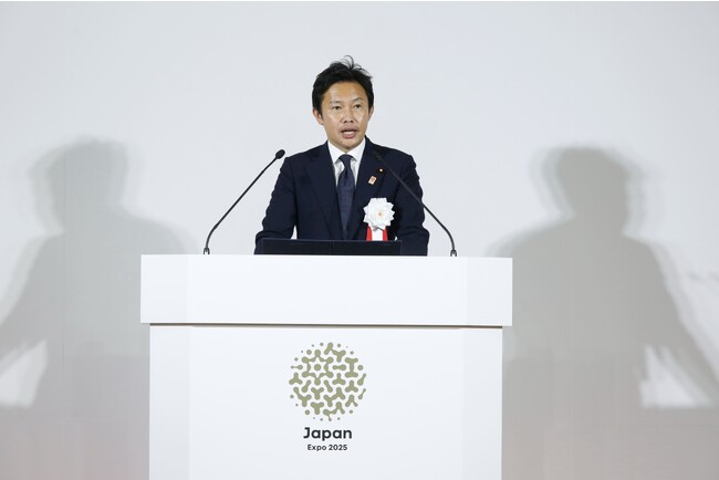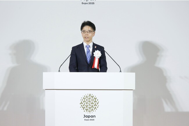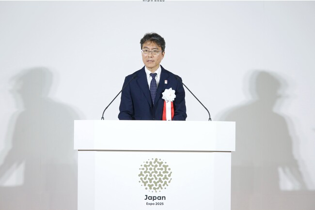 日本館で目指すこととして、「日本館は万博の顔、“いのち輝く未来社会のデザイン”という万博のテーマを、政府としてプレゼンテーションする拠点となります。これまでも国際博覧会における政府館の整備を行なっていますが、日本館の整備に当たっては、コンセプトの実現に向け、来場者の皆様に利用しやすいユニバーサルデザインの実現を目指し、関係者の皆様と設計を進めて参りました」と発表。「工事の実施に関しては何よりも安全が重要であり、関係者皆様の一層のご支援、ご協力を賜りますことお願いいたします」と日本館の起工にあたっての想いを述べ、共催者挨拶を締め括りました。